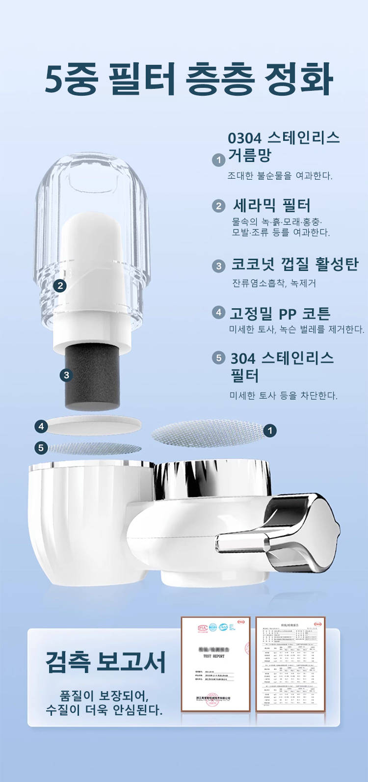[5층 여과 오염수] 초강력 수도꼭지 정수기